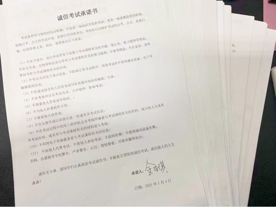 图2 全体同学签署《诚信考试承诺书》