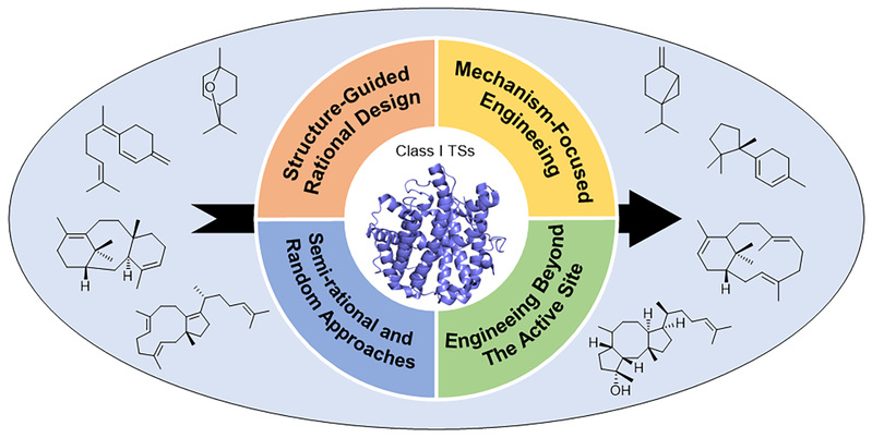 该综述系统梳理了I型萜类合酶的六大工程化策略:结构引导的理性设计(靶向活性位点残基、水分子网络和保守基序)、进化与比较方法(利用自然变异和系统发育分析)、机制聚焦的工程改造(控制碳正离子中间体和反应分支点)、活性位点外的工程策略(第二壳层工程和接触网络映射)、蛋白质片段工程(结构域交换和嵌合酶构建)以及半理性和随机方法(丙氨酸扫描、饱和突变和定向进化)。综述还探讨了计算模拟、机器学习和高通量筛选等新兴技术在酶工程中的应用前景,为萜类化合物的生物合成研究提供了重要的理论指导和方法学参考。值得一提的是,董廖斌教授课题组此前已在NPR发表了II型萜类环化酶的系统性综述(Nat. Prod. Rep., 2024, 41, 402-433),本文与其形成互补,共同构建了萜类合酶研究领域的完整知识体系。
